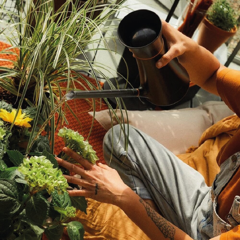 Gießkanne mit schlankem, langem Auslauf für schonendes und präzises Gießen.