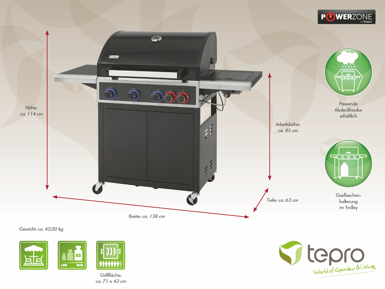 Produktparameter des Tepro Keansburg 4 Gasgrills: