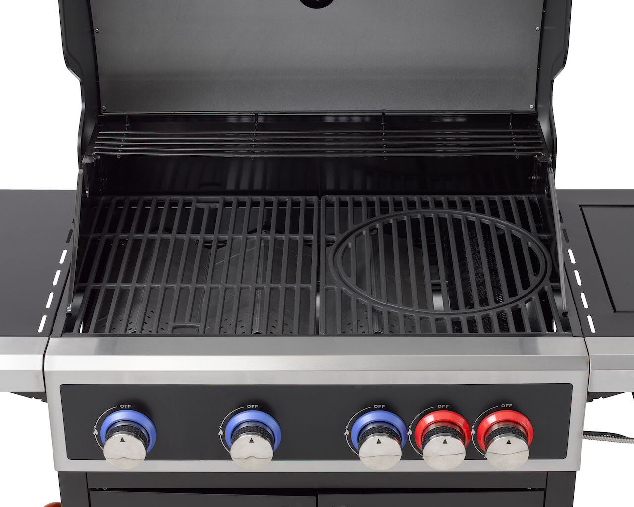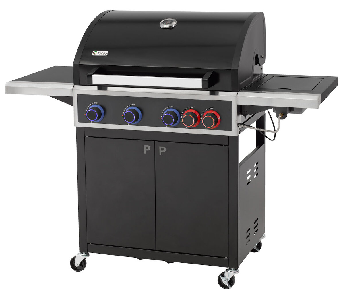 Müssen Sie Lebensmittel schnell garen? Kein Problem, legen Sie sie einfach auf den POWERZONE-Brenner des Tepro Keansburg 4. Der patentierte, leistungsstarke 4,2 kW-Brenner sorgt für eine wirklich starke Hitze. Dadurch erhält Ihr Grillgut eine knusprige Kruste und bleibt innen schön saftig. Neben dem POWERZONE-Brenner verfügt dieser Gasgrill über 3 weitere hochwertige und langlebige Edelstahlbrenner mit einer Leistung von jeweils 3,2 kW. Der Grill ist außerdem mit einem Seitenbrenner mit einer Leistung von 4,2 kW ausgestattet, z.B. zum Garen von Speisen in einem Wok oder Topf.