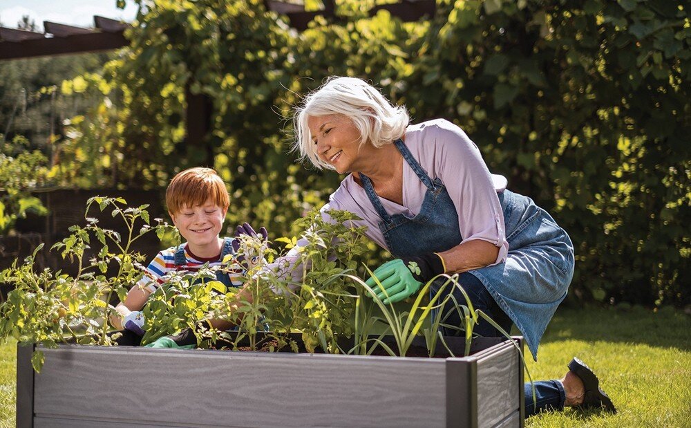 Hochbeet Maple trough, grau KETER ermöglicht eine einfache und bequeme Pflanzenzucht. Dank der modernen Evotech-Technologie ist es langlebig, wartungsfrei und fügt sich perfekt in jeden Garten ein.
