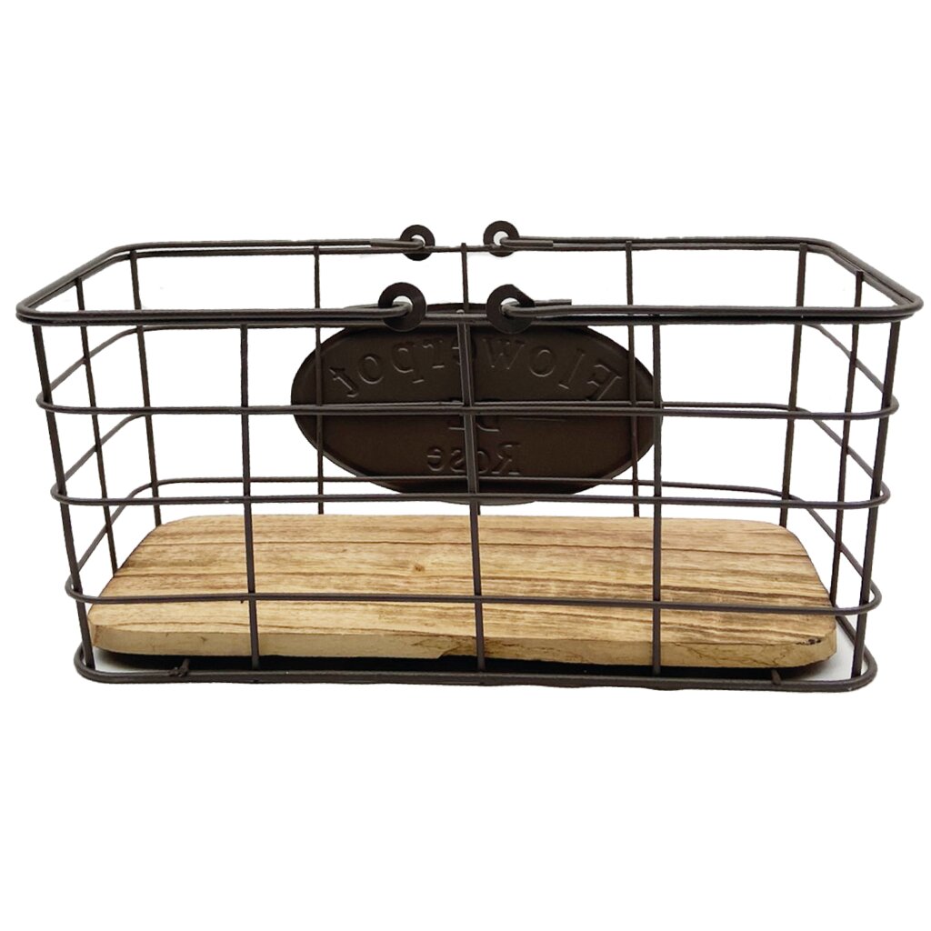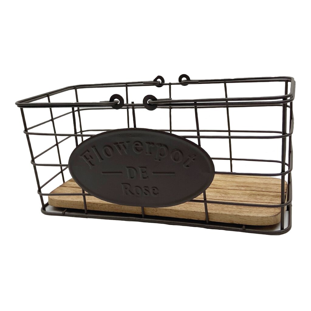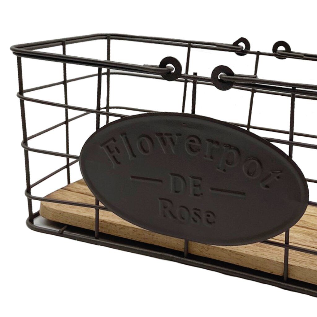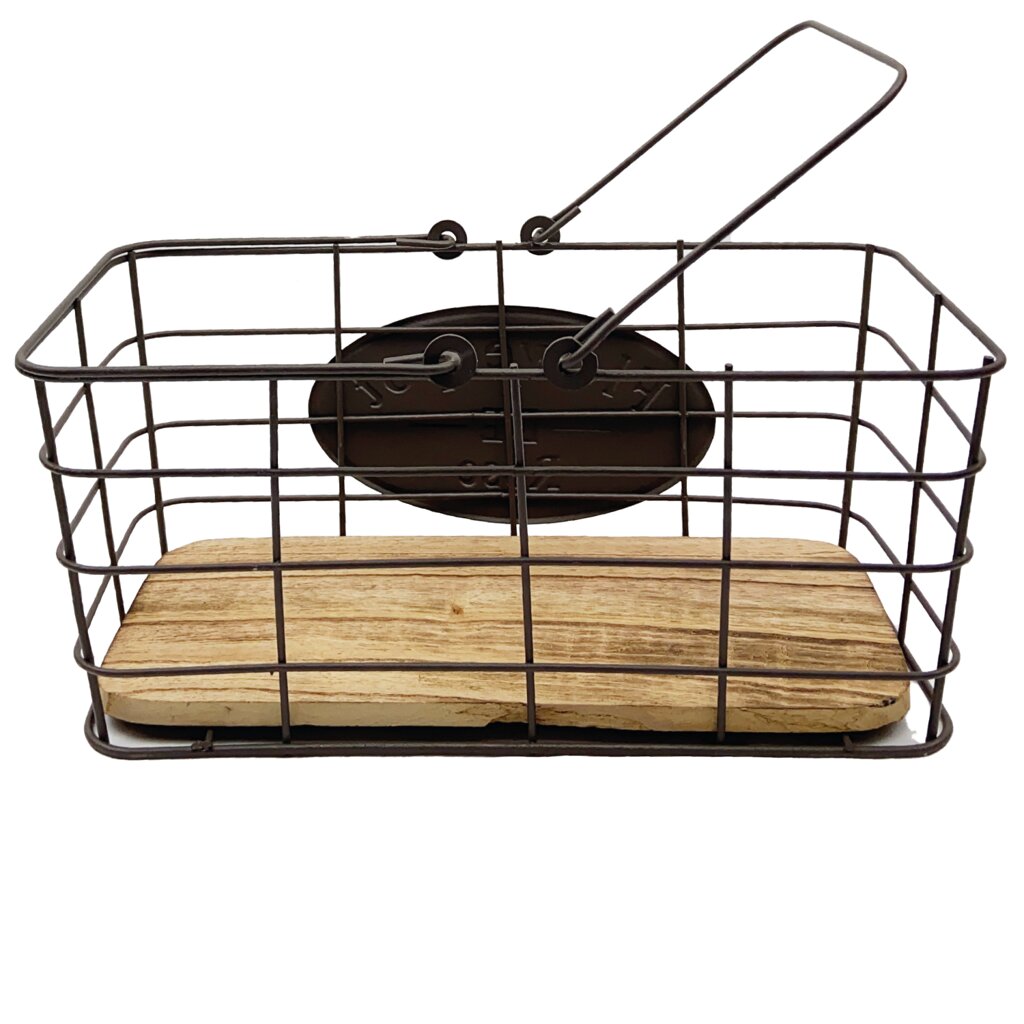 Der Holzboden verleiht dem Korb ein natürliches Aussehen und sorgt gleichzeitig dafür, dass kleinere Gegenstände nicht durch Lücken im Draht herausfallen können. Die Griffe sind so konzipiert, dass sie bequem in der Hand liegen, und gleichzeitig stark genug, um sicher getragen zu werden.