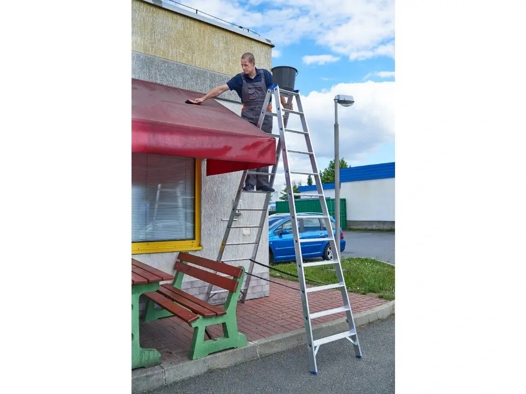 Professionelle Aluminium-Stehleiter mit breiter Basis und rutschfesten Stufen bietet maximale Stabilität und Sicherheit bei der Arbeit. Geeignet für den privaten und professionellen Einsatz.