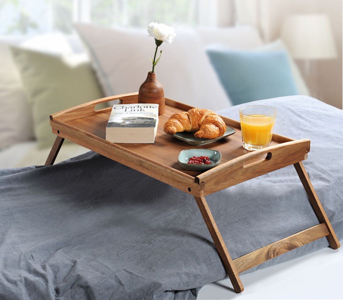 Serviertablett mit praktischen klappbaren Beinen. Ideal für Frühstück im Bett oder als Beistelltisch.