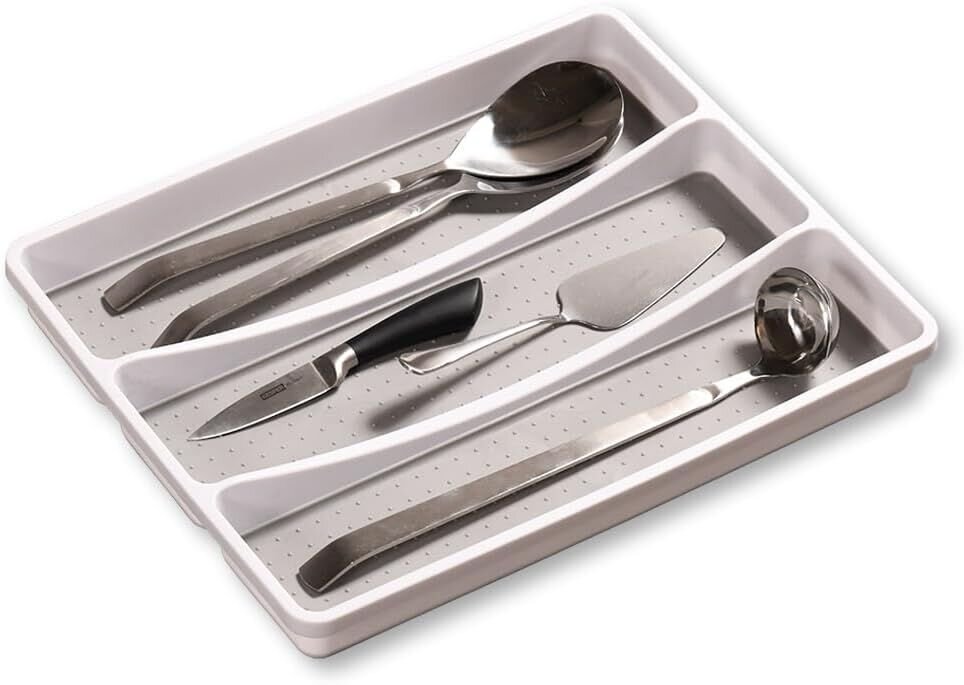 Praktisches Tablett mit drei Fächern aus hochwertigem PP-Kunststoff zur übersichtlichen und stilvollen Aufbewahrung von Besteck.