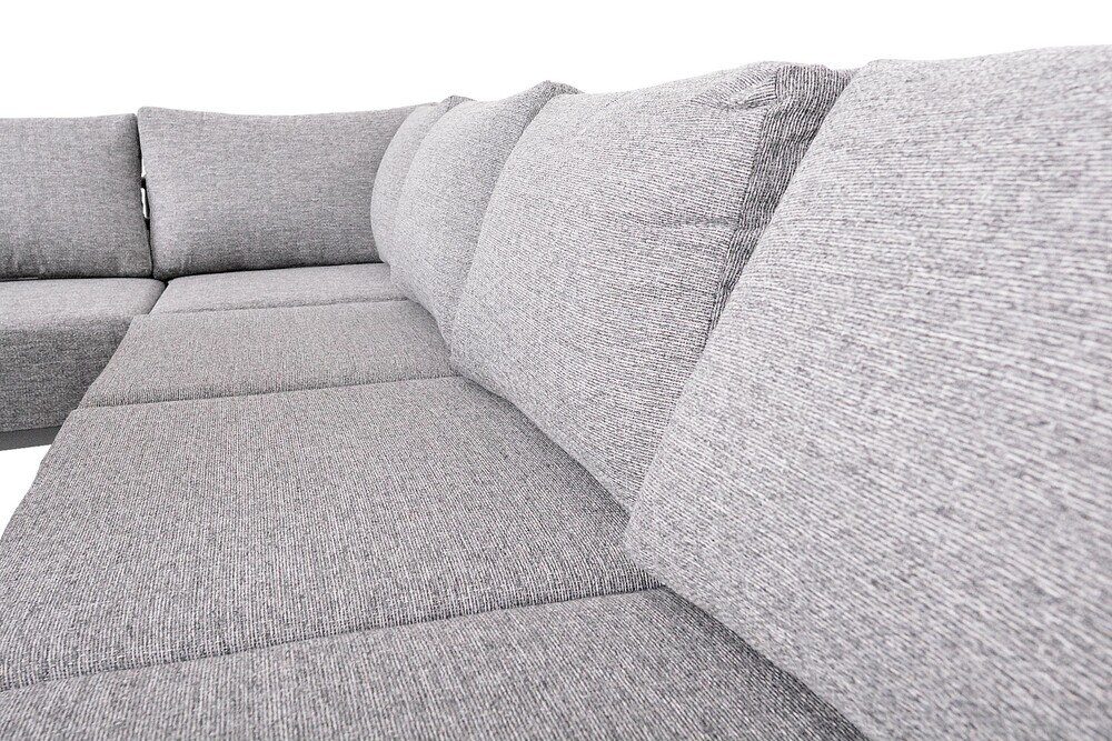 - Set-Inhalt: 1× Ecksofa (2× Zweisitzer, 1× Eckteil, 1× Mittelteil), 1× Bank, 1× Hocker, 1× Tisch