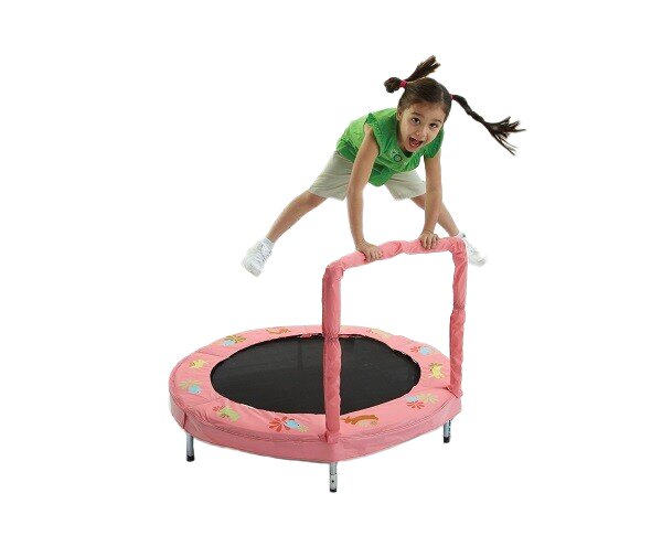 Kleines Kindertrampolin für Anfänger. Mit einem Griff, für sicheren Halt der Kinder.