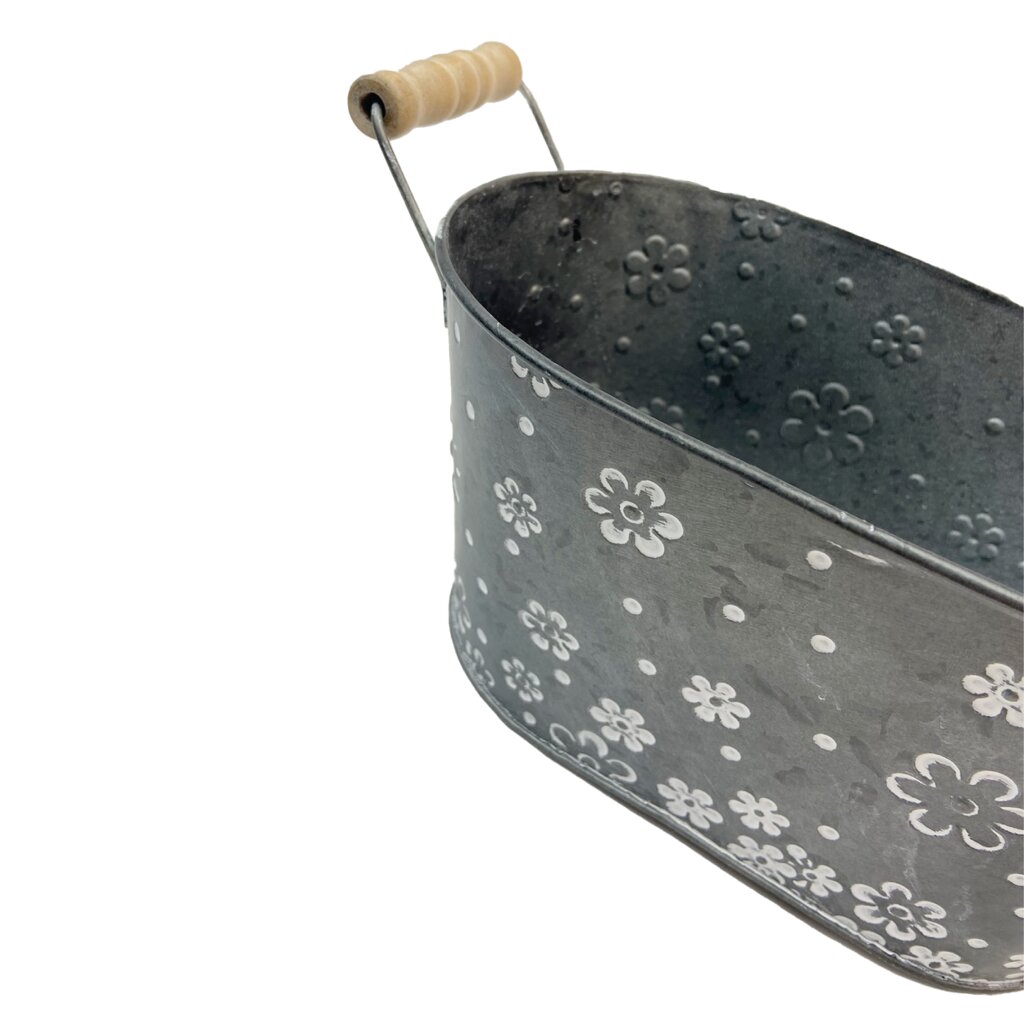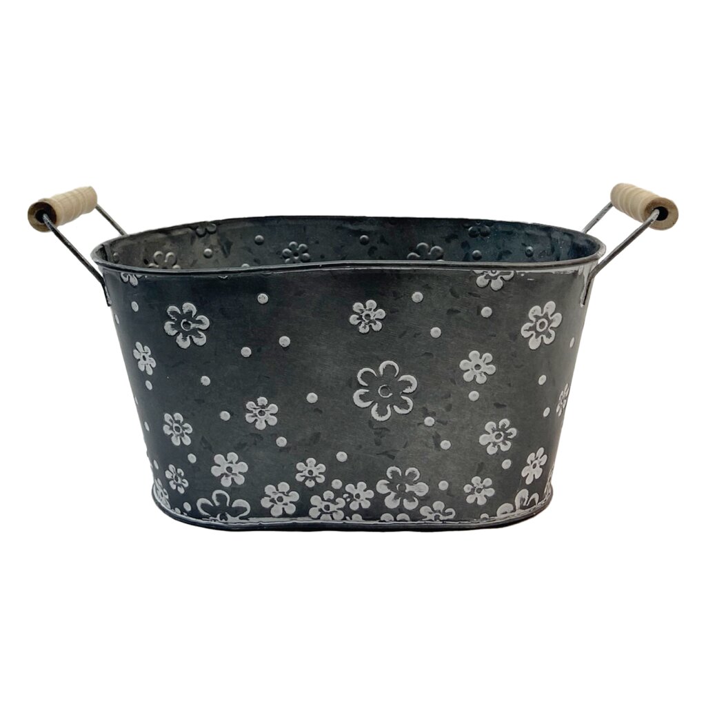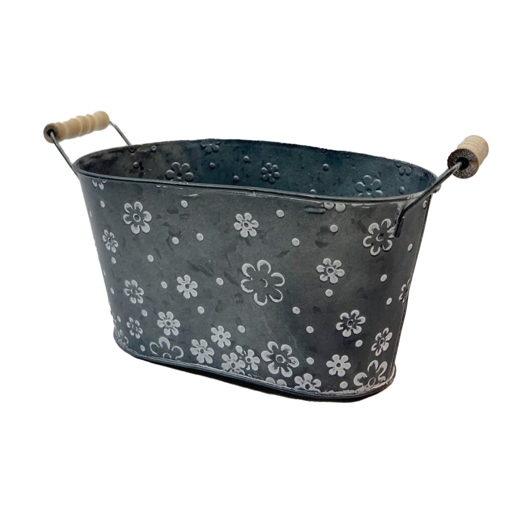 Übertopf aus Zink mit Blumenmuster oval 24 x 14 cm Prodex 1001070